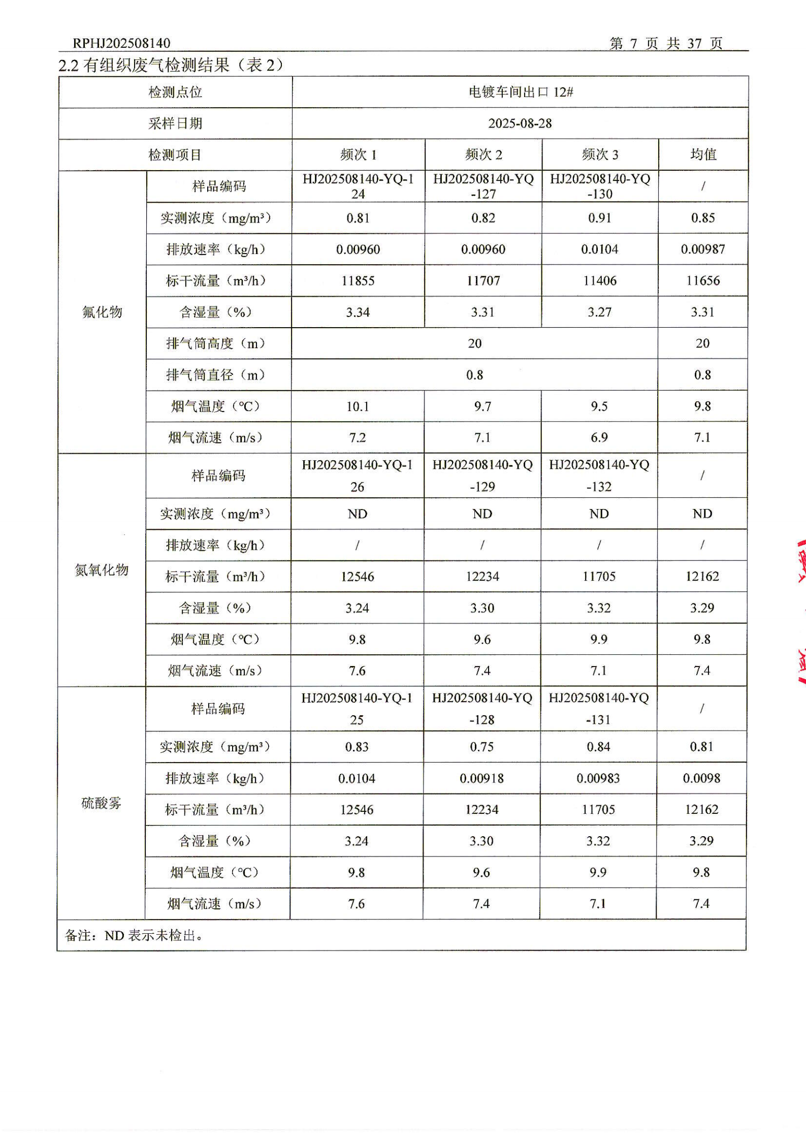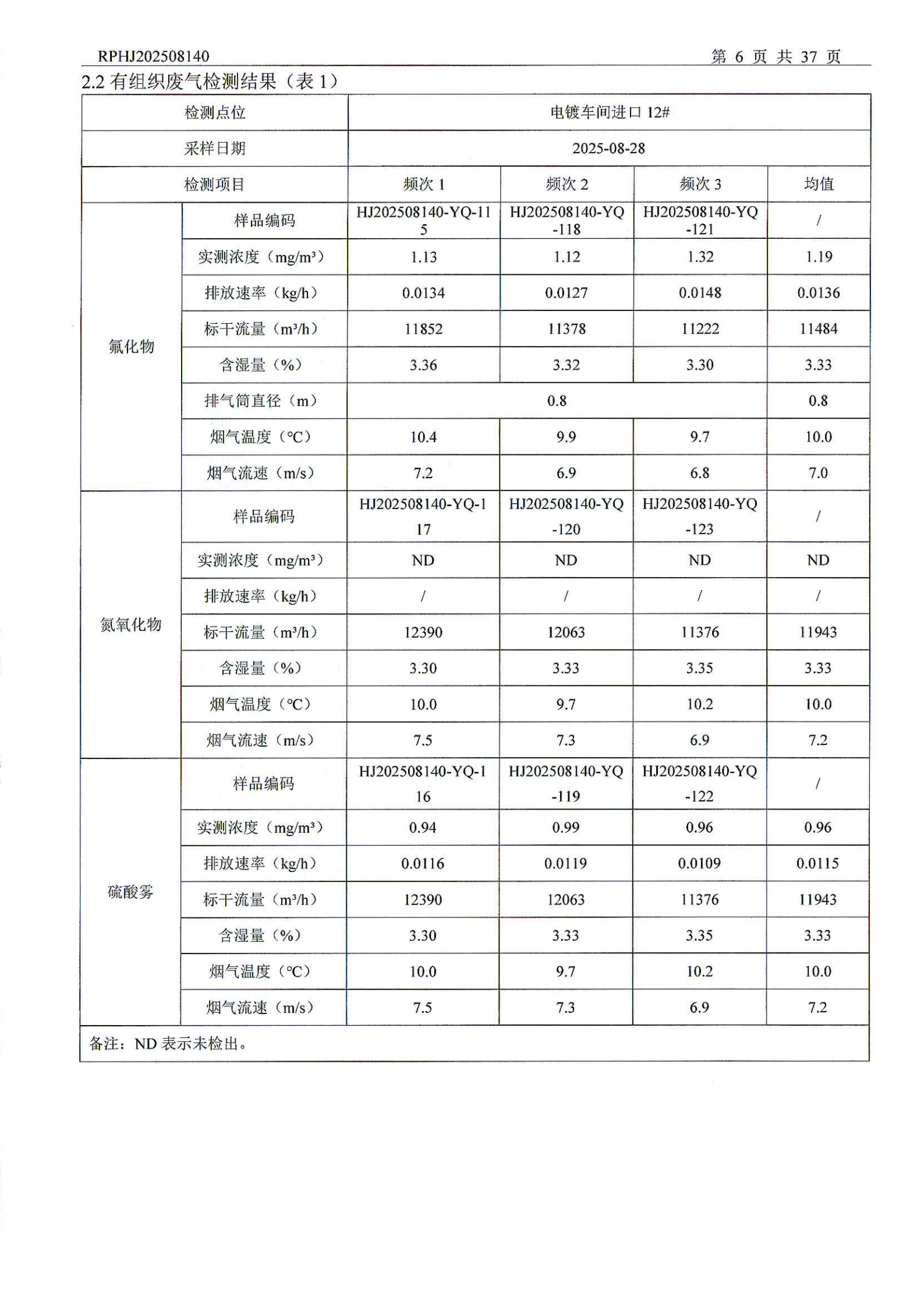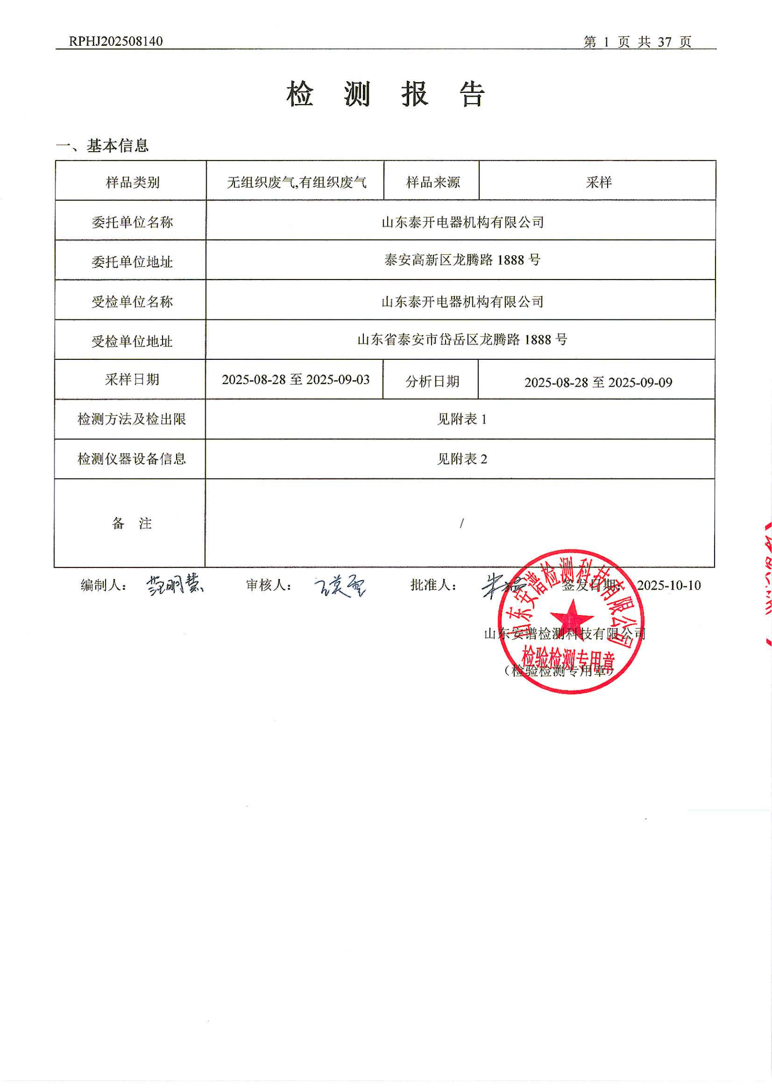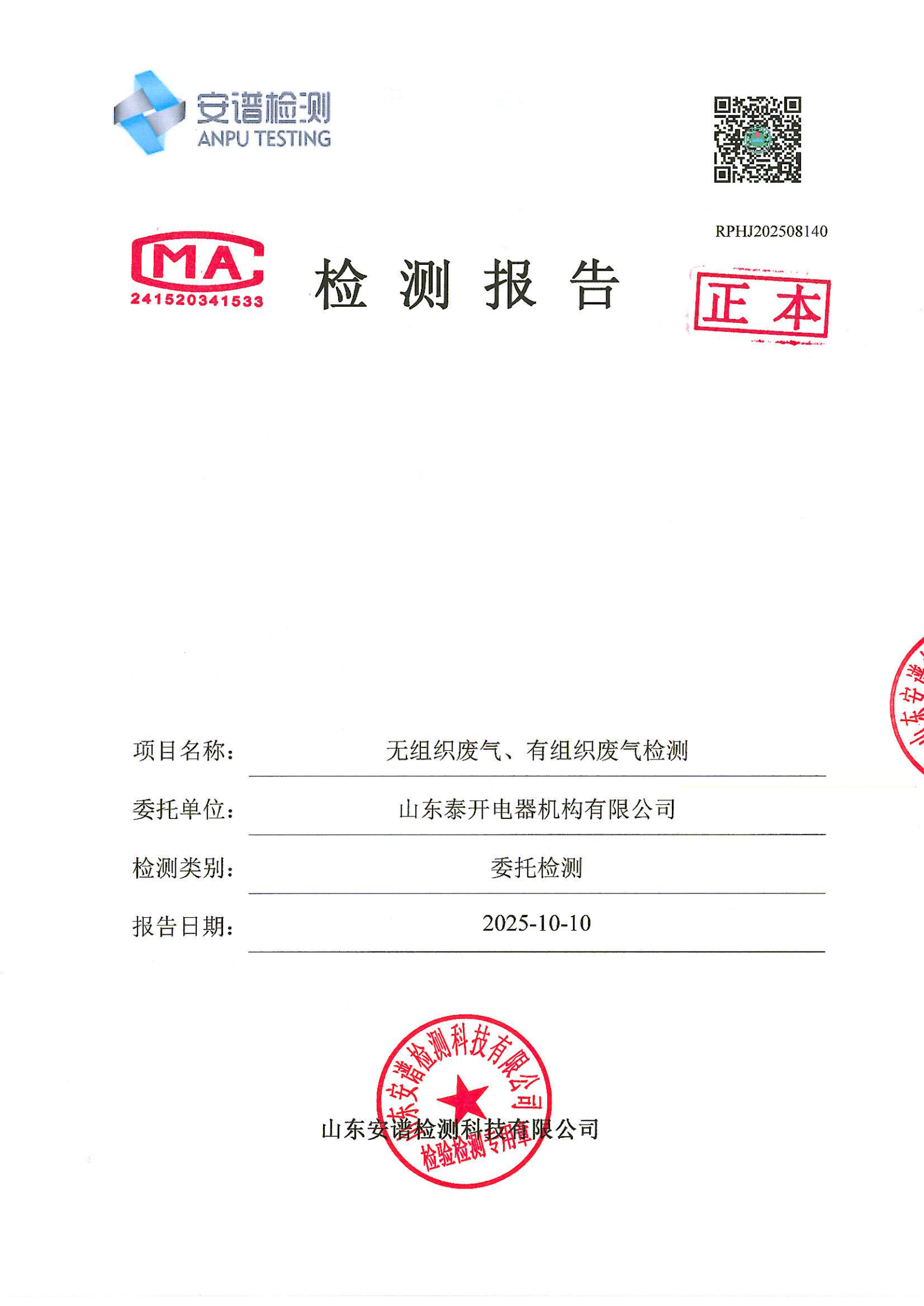 山东泰开电器机构有限公司废气检测
